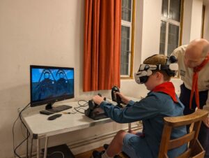 They then also got to put their new knowledge to the test by attempting to take off in a spitfire over Normandy on a VR flight simulator.
